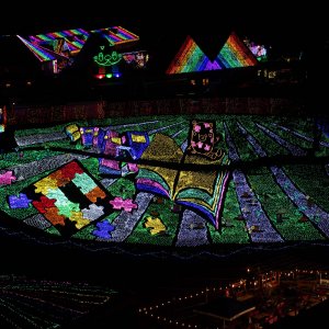 音楽に合わせたイルミネーションが変化する「光と音のショー」、全長約70メートルにも及ぶ虹のように輝く元祖「虹のトンネル」同大なスケールに圧倒される「3Dイルミネーション」、電動カートを使用したイルミネーション回遊・・・。